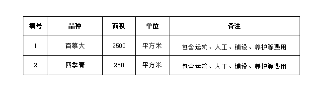 1. 本項目最高限價為含稅價43750.00元(肆萬叁仟柒佰伍拾元整),百慕大草皮單價最高限價為15元/㎡、四季青灌木單價最高限價為25元/㎡,投標(biāo)具體單價不得高于最高限價,否則按無效標(biāo)處理。